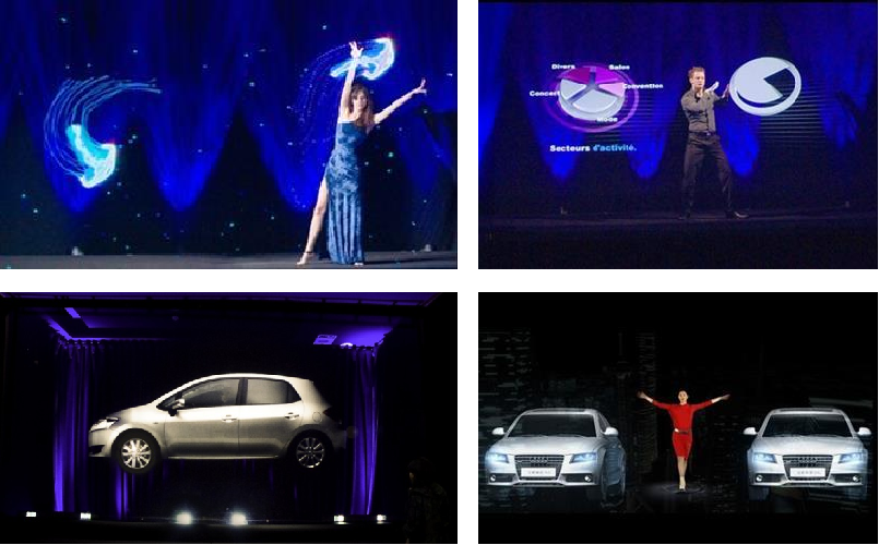 180°大型全息表演,高達(dá)四米,寬度可無限長的超大型全息表演裝置,可在空間中呈現(xiàn)色彩絢麗、畫面清晰、效果震憾、奇幻靈動(dòng)、逼真的立體影像。