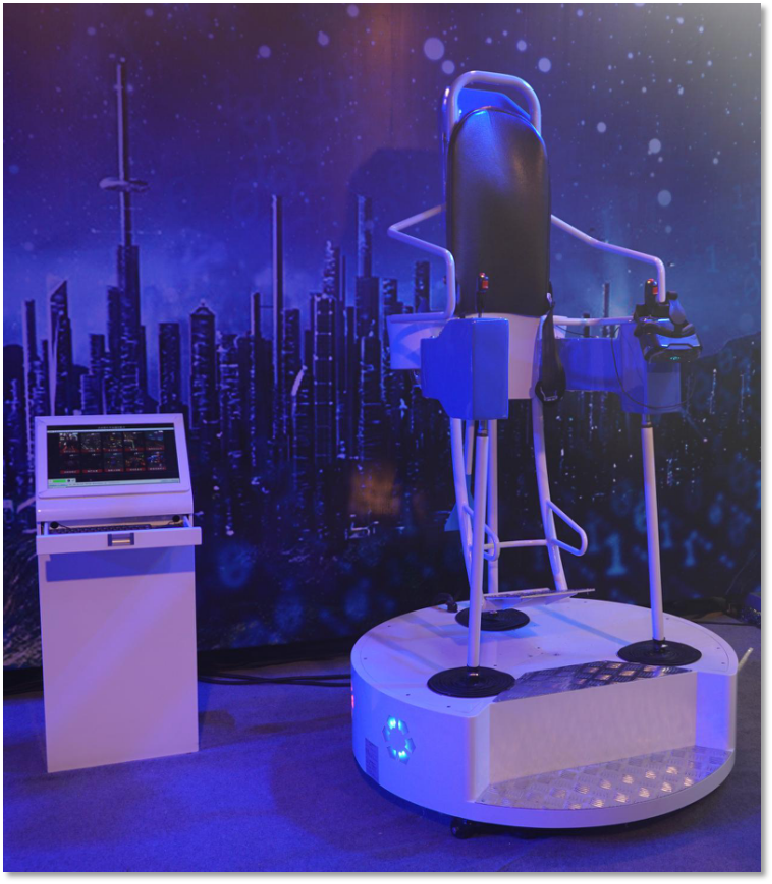 站立式飛行VR,造型獨特吸引力強。懸空設計營造失重感,體感好,飛行時會害怕往后掉下去,真實感非常強。它可以模擬飛行、跳傘、滑雪、漂流等極限運動,容易激發(fā)人們的挑戰(zhàn)欲!