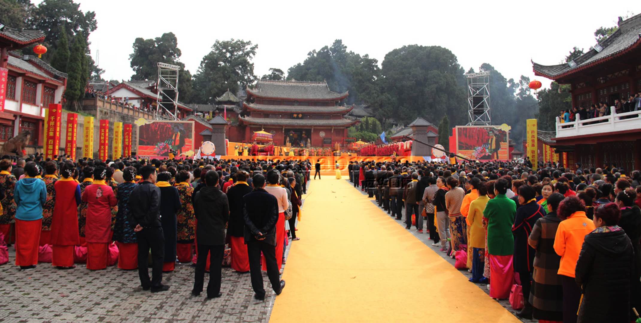 古柏森森,旗幡飄飄。3月19日一大早,兩岸嘉賓以及廣大信眾、游客,身披綬帶,在優(yōu)雅婉轉(zhuǎn)的音樂聲中,陸續(xù)從七曲山崇文廣場沿祈福大道拾級而上,邁過405級臺階進入七曲山文化廣場。