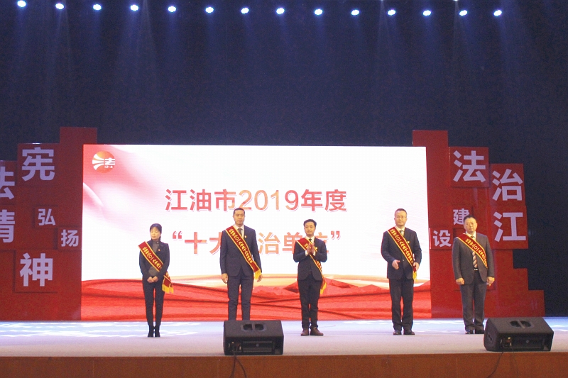 12月4日,江油市舉行了2019年度“十大法治單位”“十大法治人物”頒獎(jiǎng)典禮, 江油市委常委、政法委書記、市委全面依法治市委員會(huì)副主任李海,市人大副主任李山,市政府副市長、公安局局長宋進(jìn)勇,市政協(xié)副主席毛彬出席活動(dòng)。市級各部門、鄉(xiāng)鎮(zhèn)主要負(fù)責(zé)人,司法和行政執(zhí)法部門干部職工代表,企事業(yè)單位干部職工代表,教師、學(xué)生以及群眾代表700余人參加了活動(dòng)。