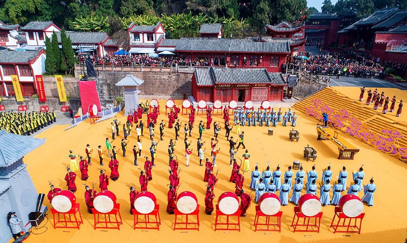 丁酉年海峽兩岸文昌祭祀大典28日在四川梓潼縣舉行,來(lái)自海峽兩岸及美國(guó)、馬來(lái)西亞、新加坡以及香港等地的嘉賓代表齊聚“天下文昌祖庭”——七曲山大廟,共同祭祀文昌帝君。