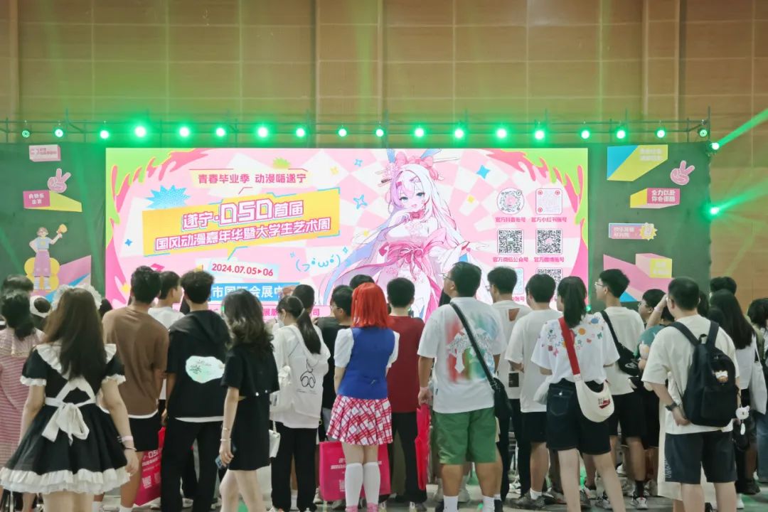 據(jù)悉,本次活動(dòng)是我市“一月一會(huì)展”活動(dòng)之一,特邀千萬級(jí)粉絲coser來到遂寧,現(xiàn)場進(jìn)行舞臺(tái)見面會(huì)和嘉賓簽售會(huì)環(huán)節(jié),與國風(fēng)動(dòng)漫粉絲們面對(duì)面互動(dòng)交流、簽名、合影留念,同時(shí)吸引了30余家國風(fēng)動(dòng)漫周邊展商、國內(nèi)知名動(dòng)漫游戲IP參展,其中8家非遺集市商家。