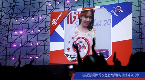 照片會(huì)同時(shí)出現(xiàn)在現(xiàn)場(chǎng)以及其他地區(qū)的大屏幕上,觀眾輸入手機(jī)號(hào)后還會(huì)收到自己照片的鏈接頁面,在手機(jī)的頁面可以下載照片,以及分享照片到自己的社交網(wǎng)絡(luò)。以此來表達(dá)對(duì)于MG品牌的熱愛。